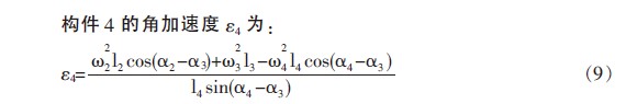 在圖1 所示的機(jī)構(gòu)中,設(shè)主動(dòng)件2 的輸入?yún)?shù)為α2;從動(dòng)件4 的 輸出參數(shù)為α4;各桿長(zhǎng)度為:li(i=1,2,3,4),MO 和MC 分別為輸入力矩和 輸出力矩;mi 和Ji 分別為各桿件的質(zhì)量和繞通過(guò)桿件質(zhì)心軸線的轉(zhuǎn)動(dòng) 慣量;ω2 為常量。 由虛位移原理, 可求得在輸出力矩MC 不變的情況下的輸入力矩 MO,即:
