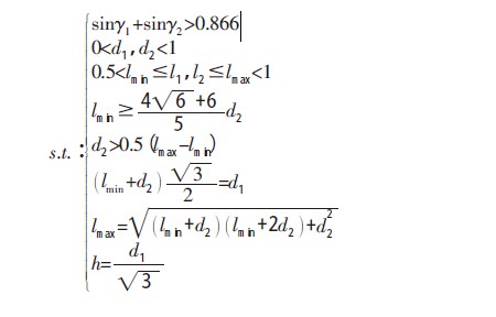 移動(dòng)副有一定的運(yùn)動(dòng)范圍,對(duì)于液壓缸等還存在一段無法運(yùn)動(dòng),即:l1 和l2的值應(yīng)該在一個(gè)范圍之內(nèi),且其上限和下限之間還存在一定的約束??梢悦枋鰹椋?