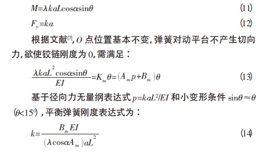 式中:k—零長彈簧剛度系數(shù);r , a—零長彈簧 上 下安裝點距鉸鏈O的距離(安裝半徑); β—彈簧安裝角度;θ—動平臺轉(zhuǎn)過的角度。由公式(3),