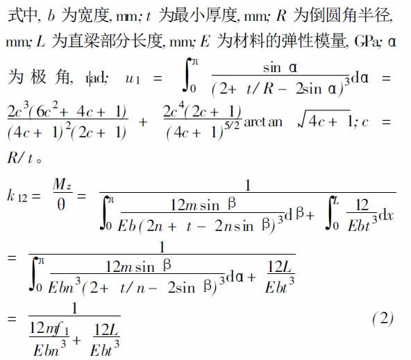 1. 2 拋物線和雙曲線直梁復(fù)合型柔性鉸鏈剛度計(jì)算公式
