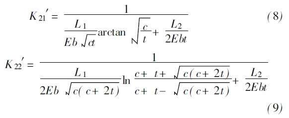 同理, 可得出拋物線和雙曲線直梁復(fù)合型柔性鉸 鏈的拉伸/ 壓縮剛度計(jì)算公式分別為