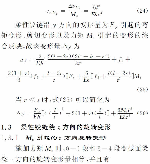 本文建立的直梁圓角形柔性鉸鏈柔度矩陣閉環(huán)解析模型,可為柔性鉸鏈以及柔性體機構的設計優(yōu)化提供理論依據。