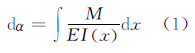 式中,α 是轉(zhuǎn)角;M 是轉(zhuǎn)矩;E 是材料彈性模量;I 是鉸鏈截面對z 軸的慣性矩。取出如圖2的微元進行積分,可得鉸鏈轉(zhuǎn)角公式為:.jpg)