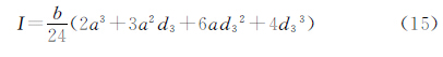 在加工柔性鉸鏈時,切口圓弧軸心線的偏離情況較為復(fù)雜,主要有兩種情況,一種是兩圓弧的軸心線互相平行,具有共同的垂直度誤差φ,在具體的微位移機構(gòu)中,這會導(dǎo)致不對稱的應(yīng)力狀態(tài),可能引入機構(gòu)位移耦合誤差。第二種是兩圓弧軸心線不平行,從而導(dǎo)致鉸鏈截面發(fā)生變化。我們考慮第二種情況,當(dāng)軸心線左右偏離時所得截面和上文1.2節(jié)所述類似,而當(dāng)其中一條軸心線前后偏離時的誤差d3如圖5所示,取出圖5中間鉸鏈截面,如圖6所示。