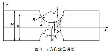 柔性鉸鏈的厚度t是一個重要的參數(shù),切口圓弧y 方向的定位誤差d1如圖3所示,它直接影響厚度t的大小。在誤差d1的影響下