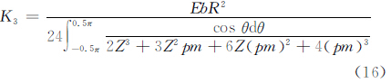 令m=t/R,d3=pt,將式(14)、式(15)、式(6)代入式(1)可得轉(zhuǎn)動剛度
