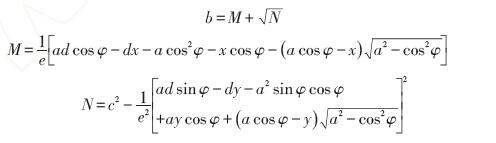 由公式(1)推導(dǎo)出b關(guān)于x,y,φ的函數(shù)關(guān)系b=f(x,y,φ)如下: