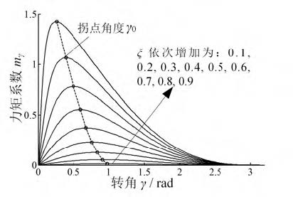(2) γ∈[0, β]時,轉(zhuǎn)角γ 增大,mγ從零先增大, 至拐點角度γ0處取最大值mγmax,后又逐漸減小。