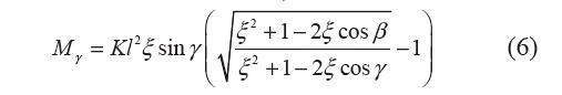 圖5 中,取力矩Mγ順時針為正,曲柄轉(zhuǎn)角γ逆時針為正,下面建模分析力矩載荷Mγ與曲柄轉(zhuǎn)角γ 之間的關(guān)系,建模過程是有量綱的。